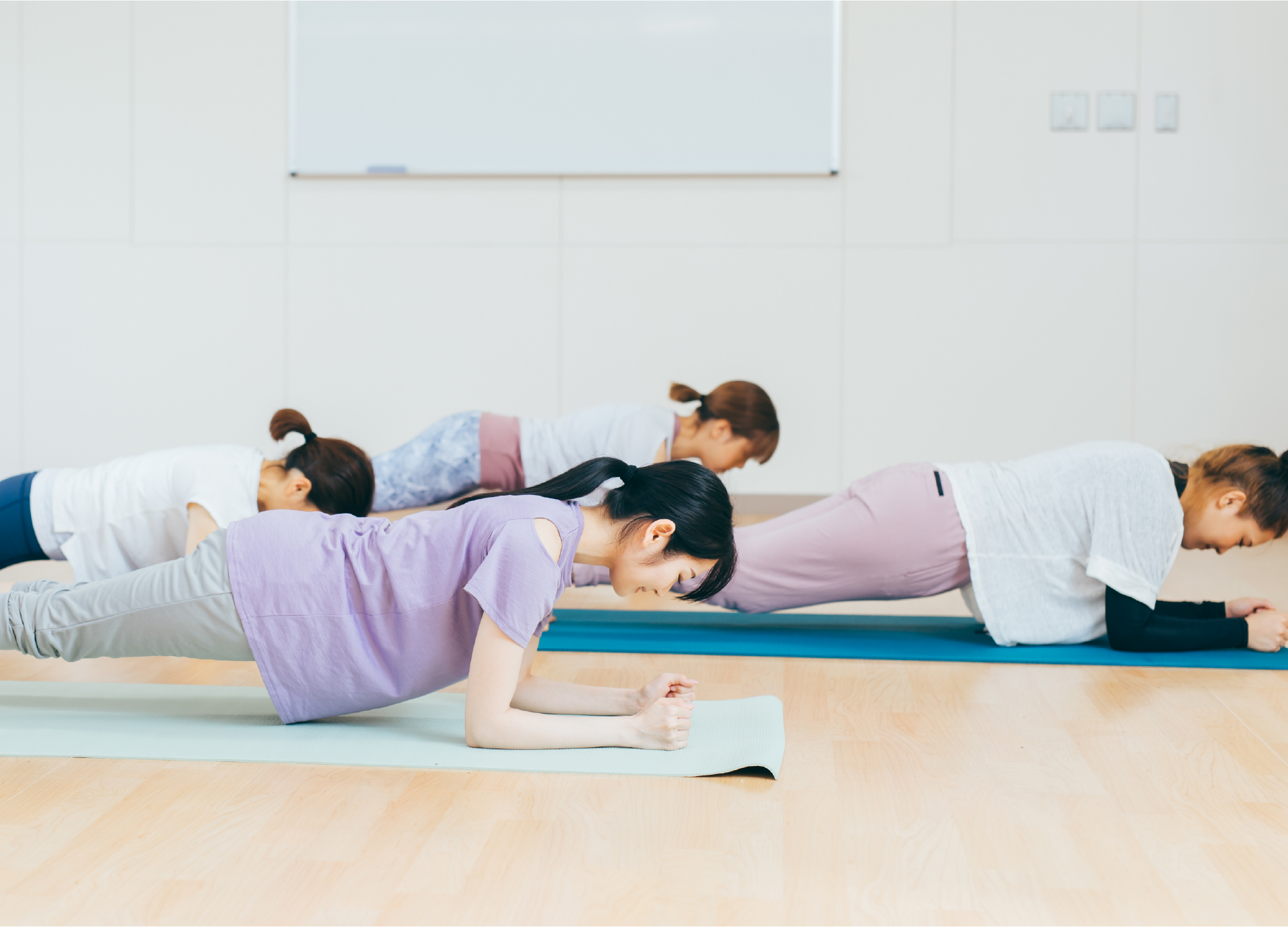 ピラティスでは、交感神経を活性化させる胸式呼吸と、体が流れるような動作を行います。体の深層部にあり、体幹に関連するインナーマッスルを鍛えること で、筋肉を強化して体のゆがみを解消して体全体のバ ランスを整えることを目的としています。